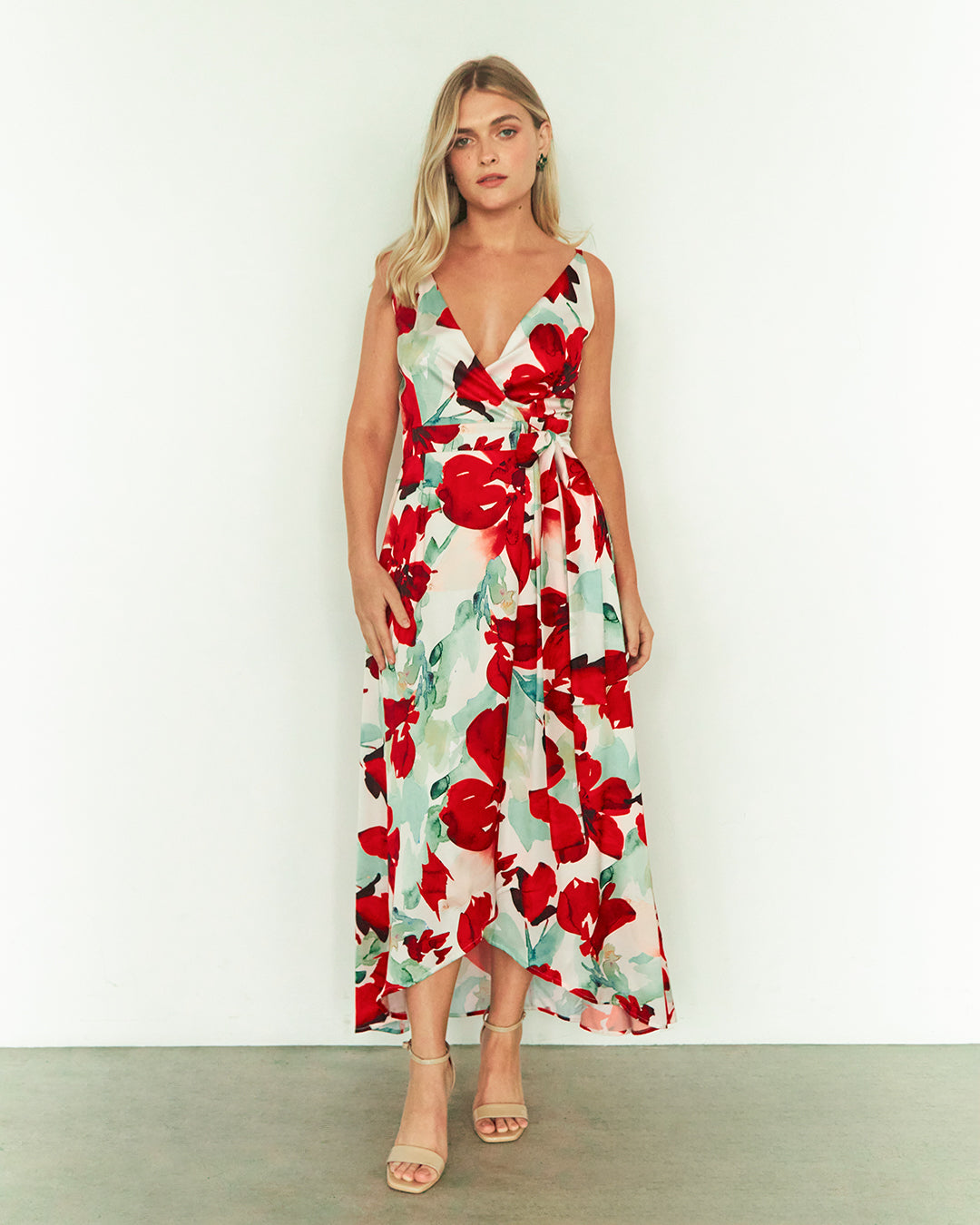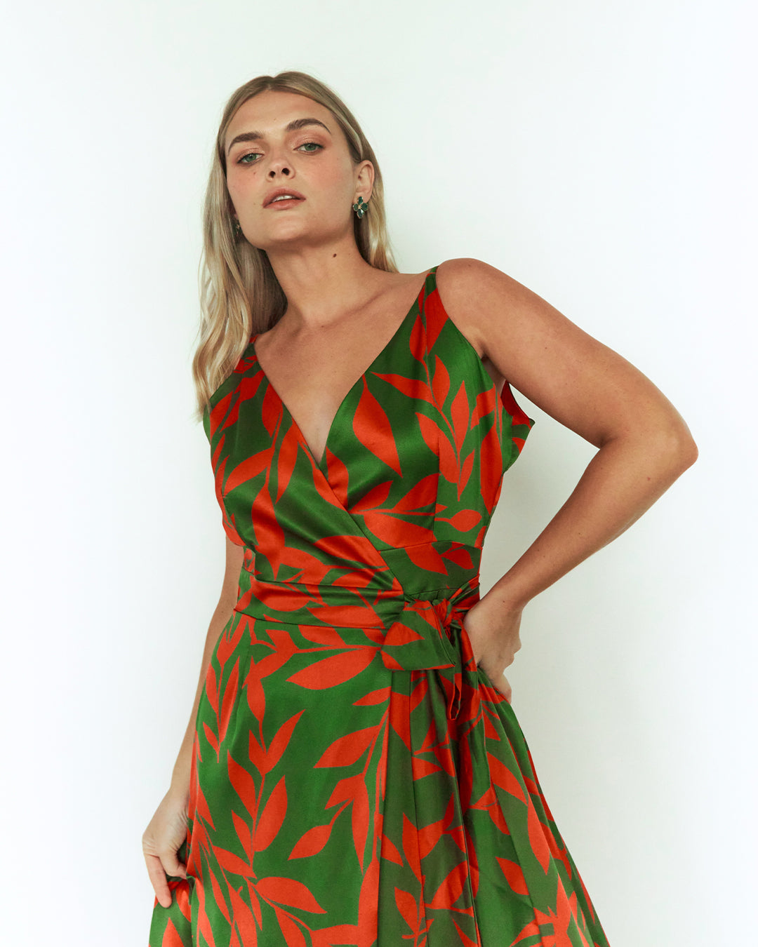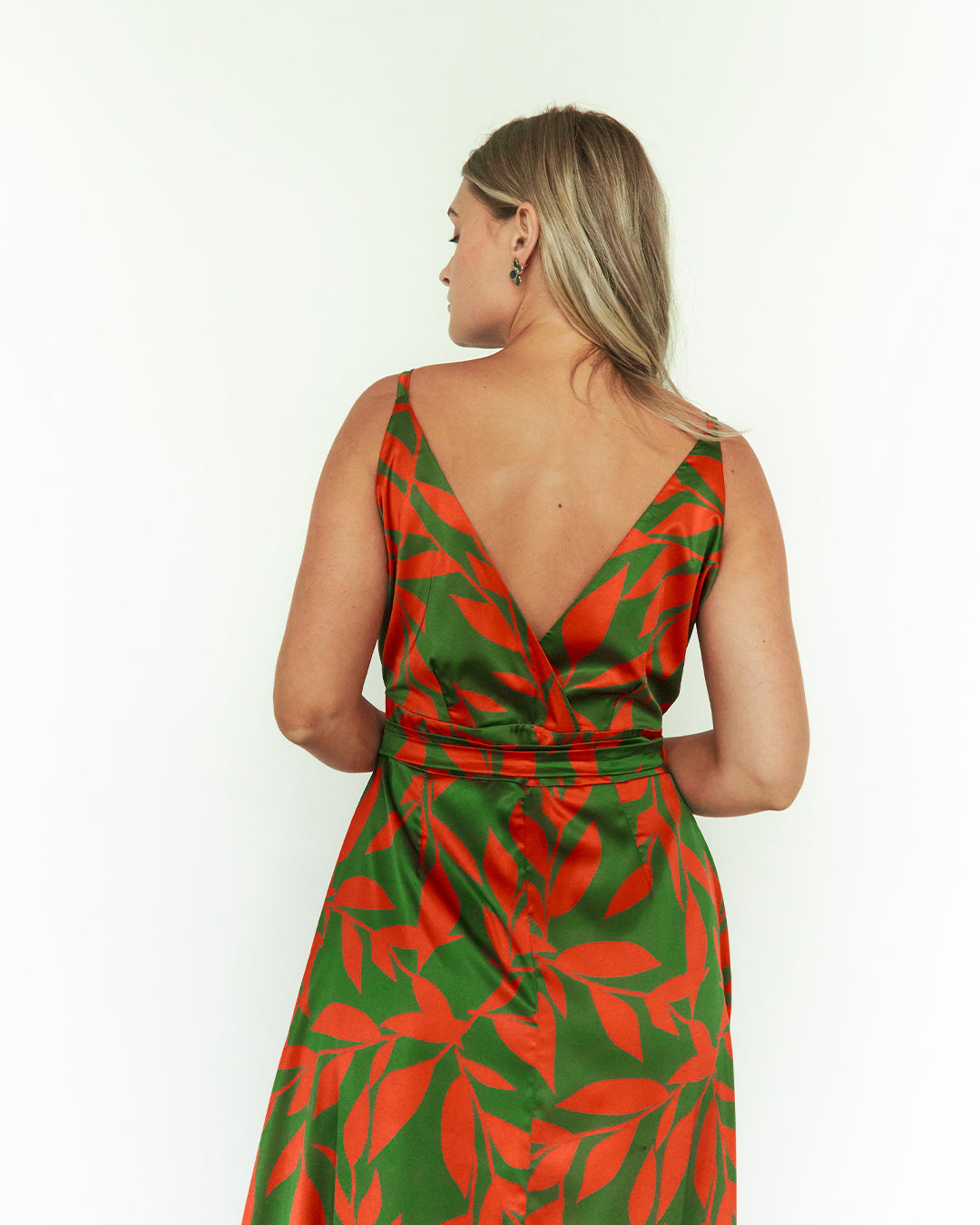Este vestido de seda destaca por su diseño envolvente y escote en V, que realza la silueta con elegancia y sutileza. Su estampado vibrante añade personalidad y frescura, convirtiéndolo en la opción ideal para ocasiones especiales con estilo.