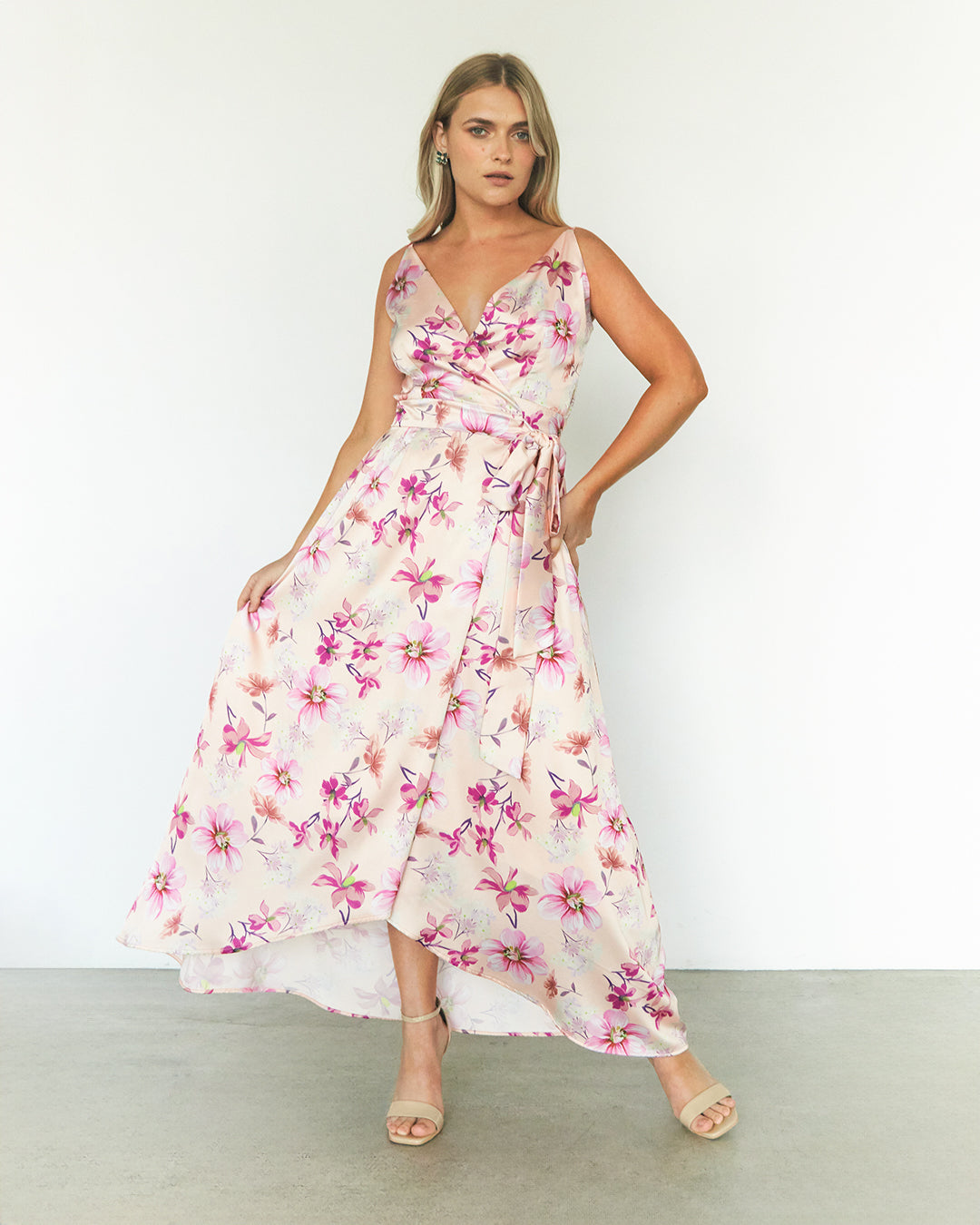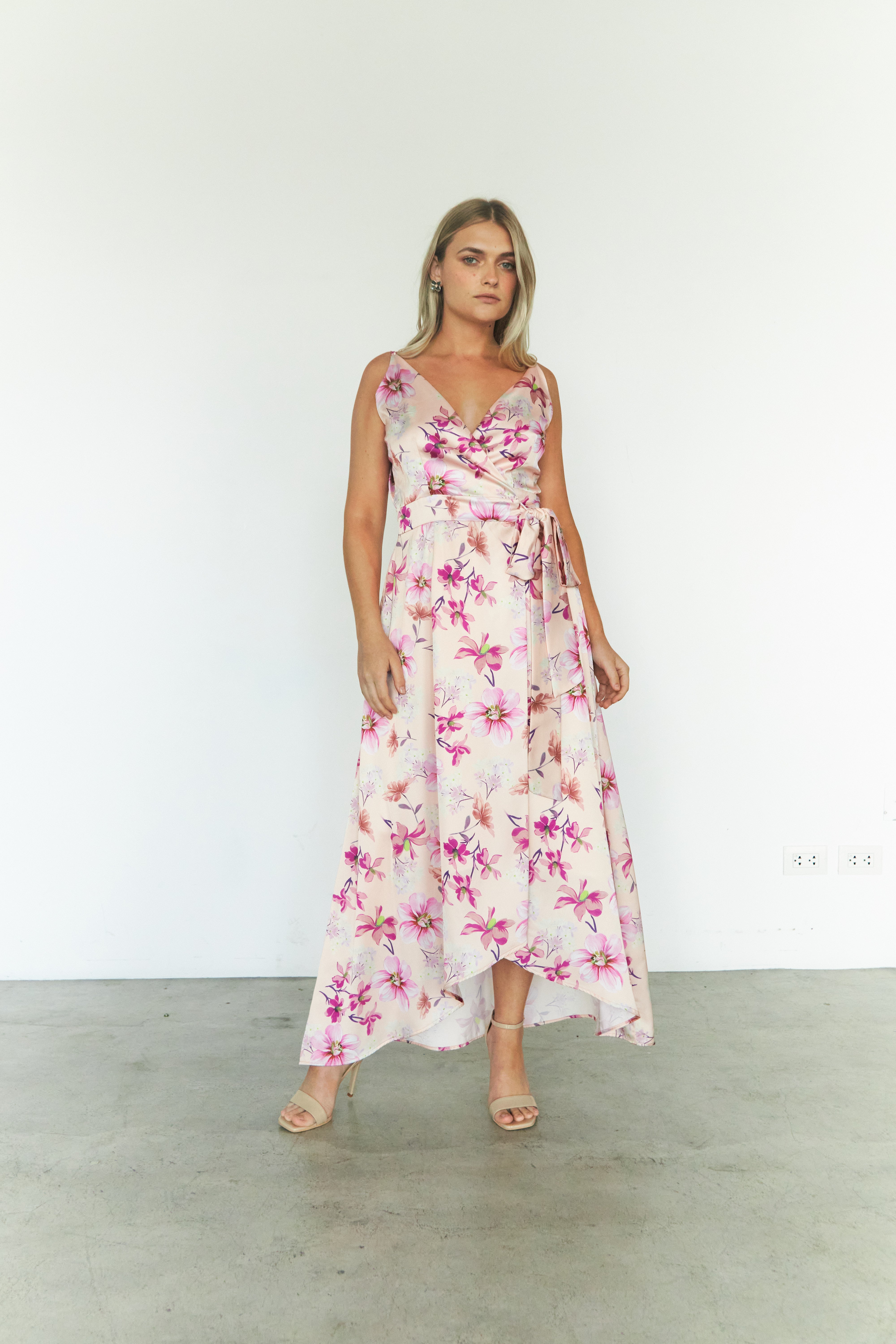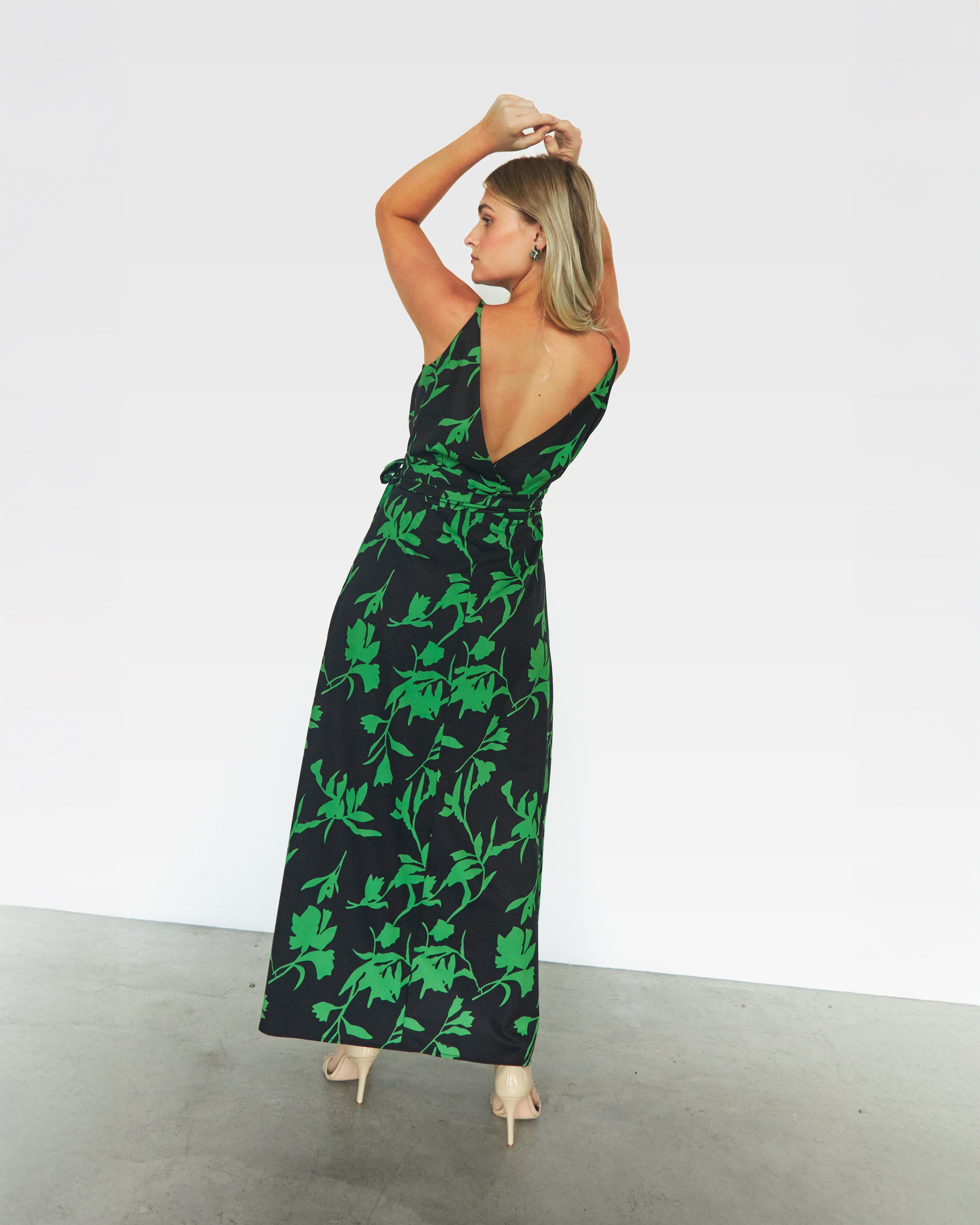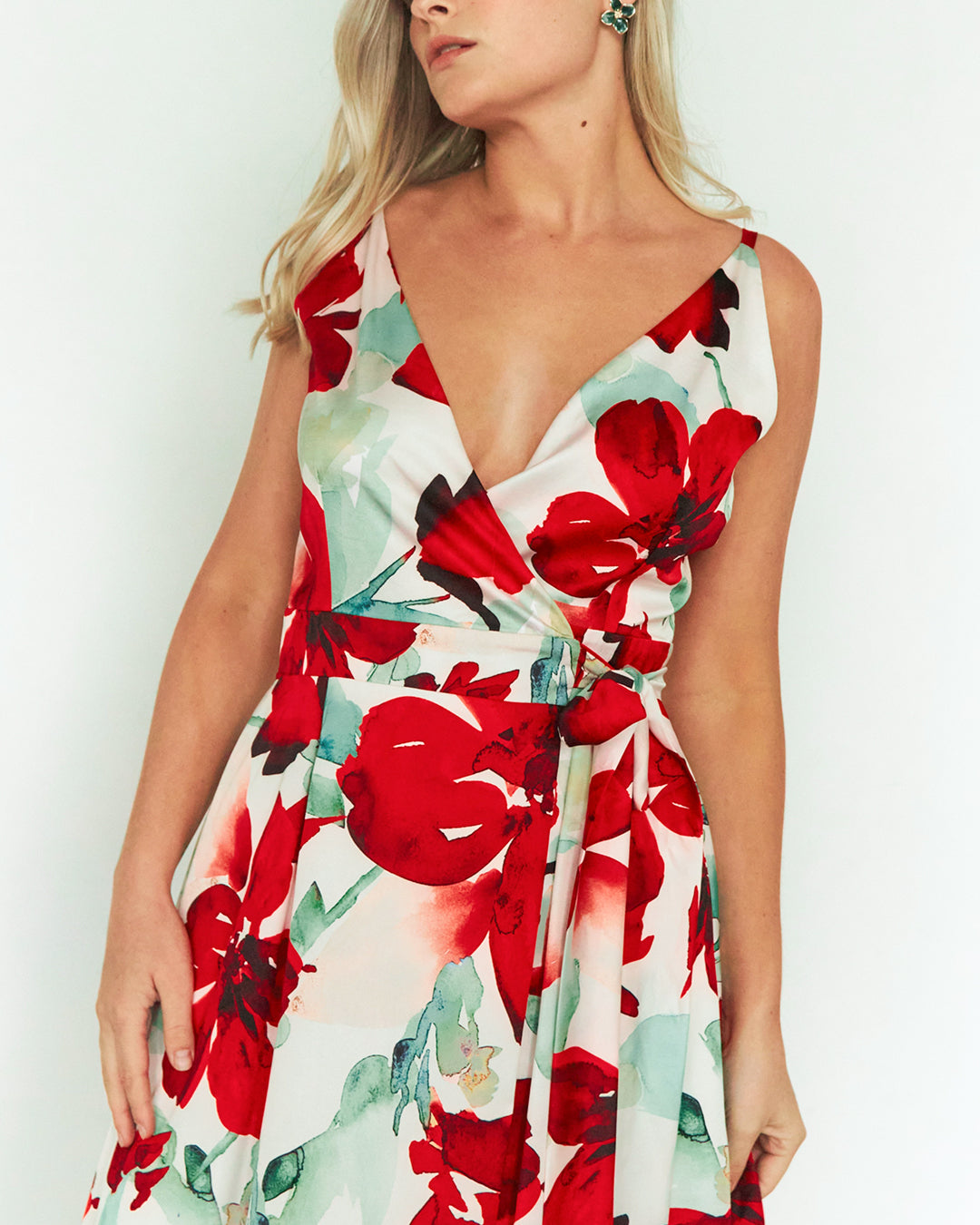 Este vestido de seda destaca por su diseño envolvente y escote en V, que realza la silueta con elegancia y sutileza. Su estampado vibrante añade personalidad y frescura, convirtiéndolo en la opción ideal para ocasiones especiales con estilo.